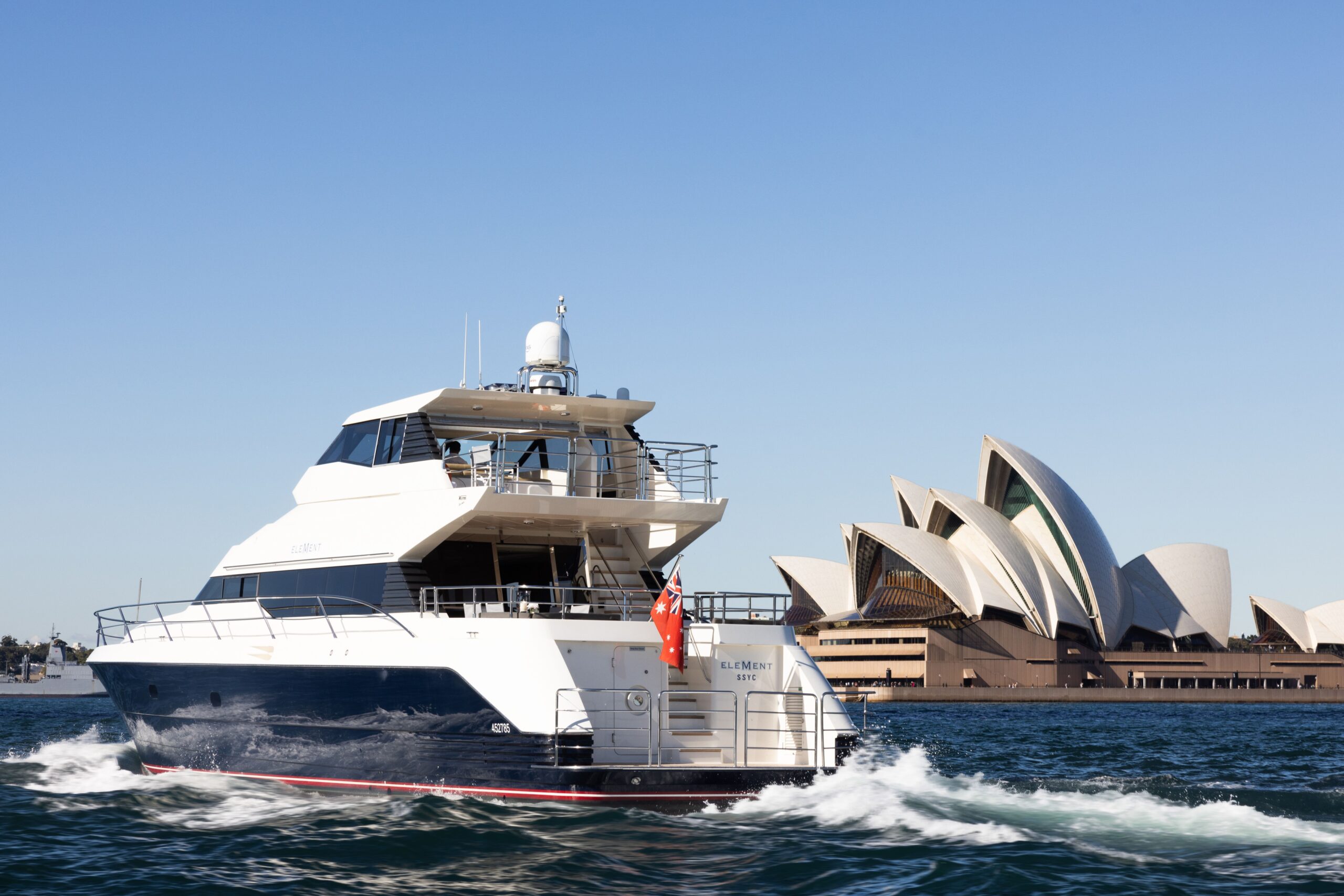 Experience the pinnacle of luxury aboard Element, an 82-foot Warren Yacht that showcases the finest in Australian design and timeless sophistication. Ideal for both day charters (up to 35 guests) and overnight stays (up to 8 guests), Element provides a flexible and elegant setting for everything from intimate gatherings to large-scale celebrations. Her expansive teak decks include a generous aft deck perfect for al fresco dining, a sun-drenched foredeck ideal for lounging, and a stylish flybridge with a retractable sunroof offering panoramic views of Sydney Harbour.
