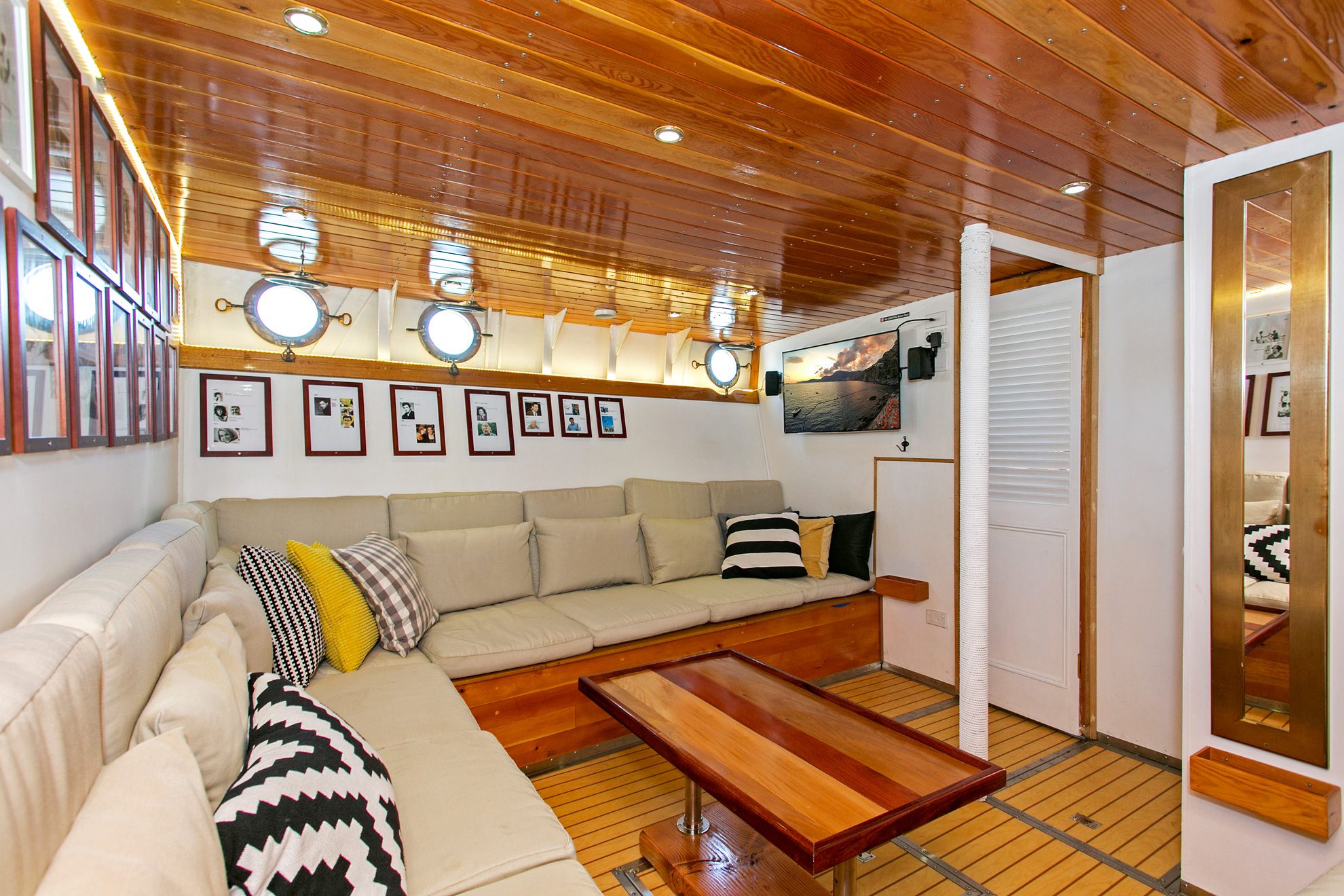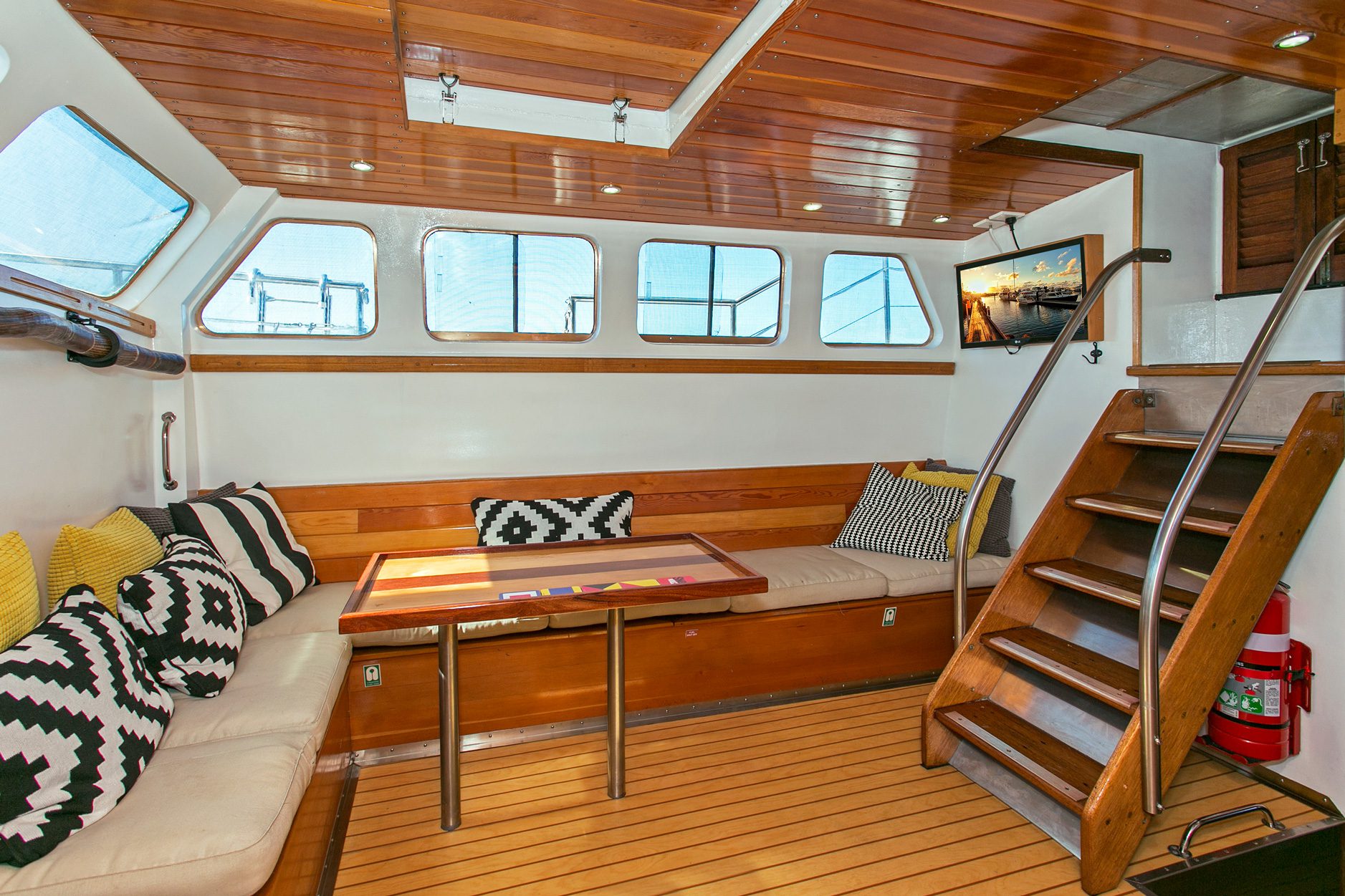 Below deck, SYDNEYSIDER surprises with spacious, elegantly designed lounges, including a main saloon illuminated by a large sunroof, creating a light-filled and inviting atmosphere. Every detail is maintained to the highest standard, ensuring a pristine, ship-shape environment. The professional, friendly, and attentive crew are dedicated to making your event seamless and enjoyable, whether it’s a daytime cruise, a lively party, or a sunset celebration.