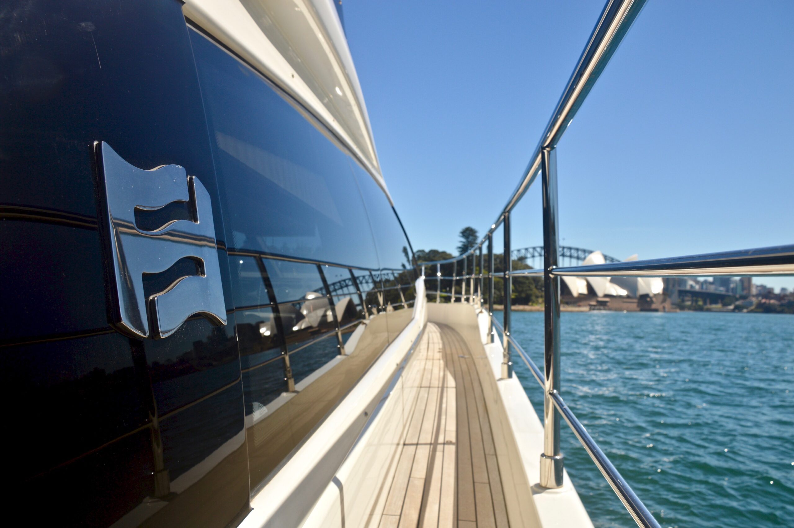 The Ribbon is a brand-new 550 Ferretti redefining luxury yacht hire on Sydney Harbour. Showcasing sleek Italian design, wraparound windows, and spacious alfresco lounges, she effortlessly blends elegance and comfort. Perfect for private events or stylish harbour cruises, The Ribbon promises an unforgettable experience on the water.
