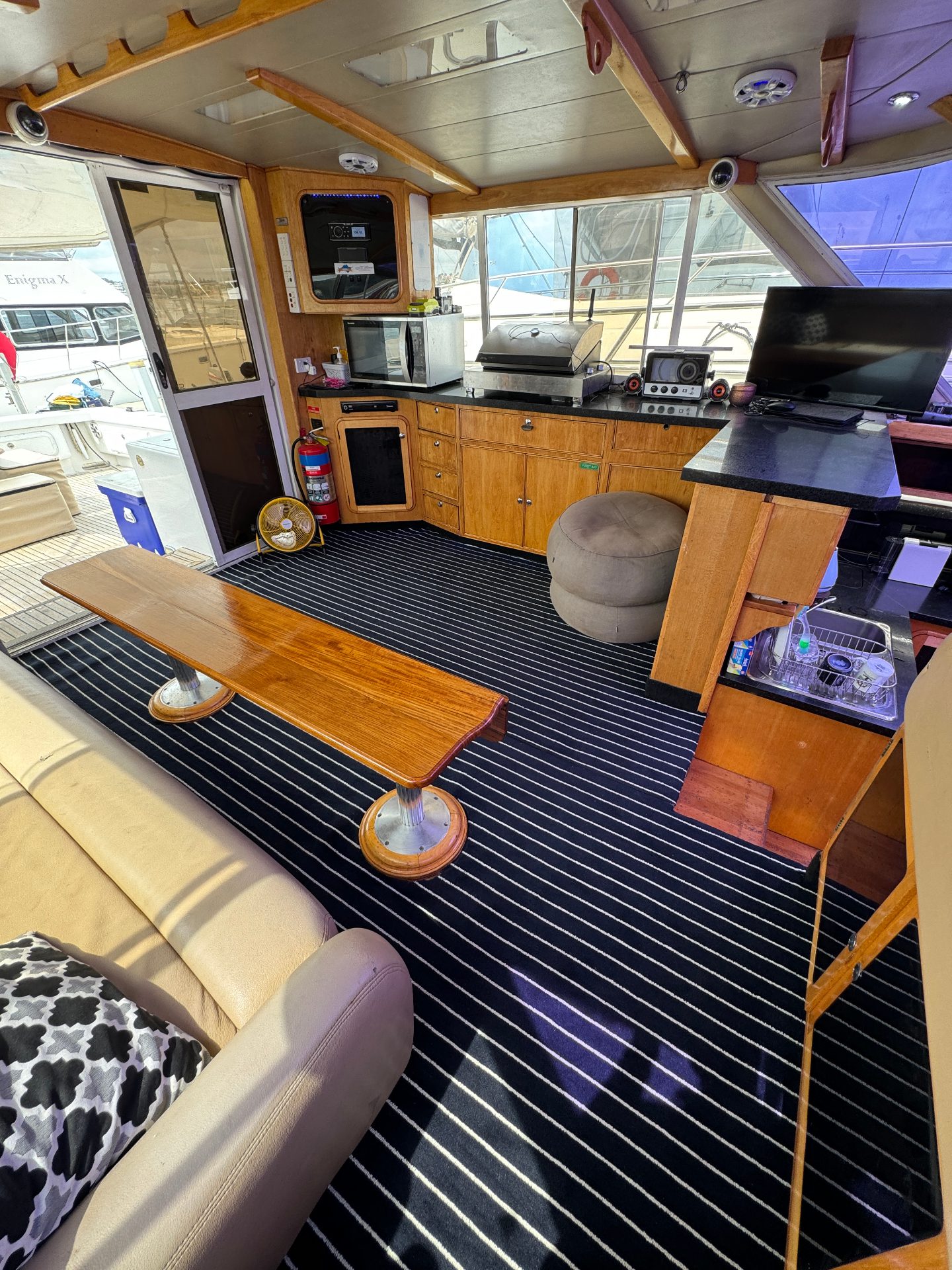 Introducing Yackatoon, a versatile motor yacht that redefines the experience of boat hire on Sydney Harbour. Whether you’re planning an intimate special occasion or a lovely day out, this 50ft motor yacht is the perfect choice for groups of up to 35 guests. Yackatoon’s wide beam provides stability, making it equally suitable for leisurely cruising or adventurous day fishing charters against the picturesque backdrop of Sydney Harbour.
