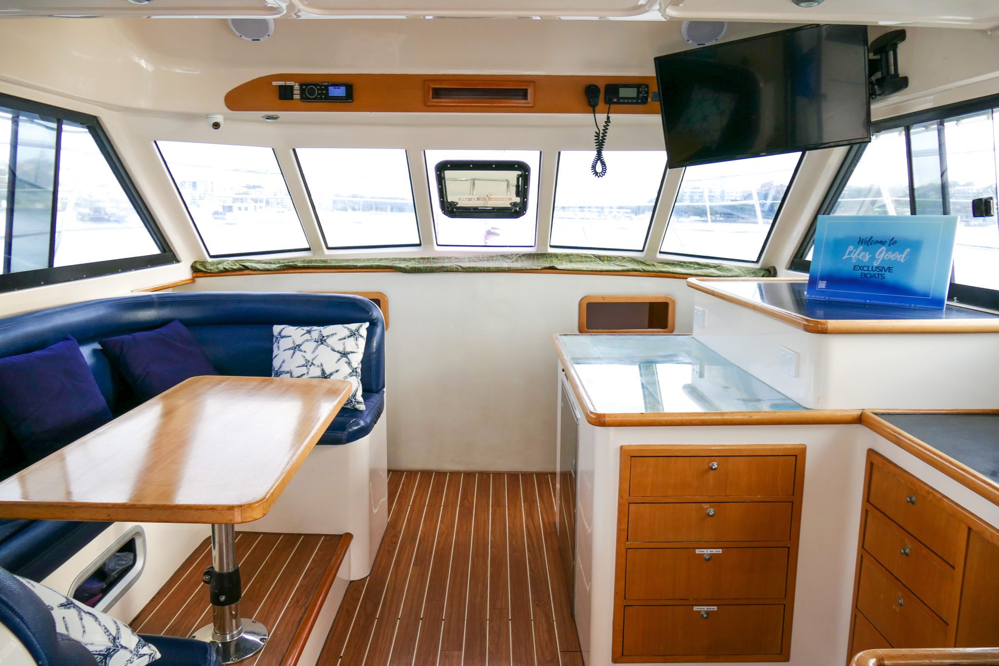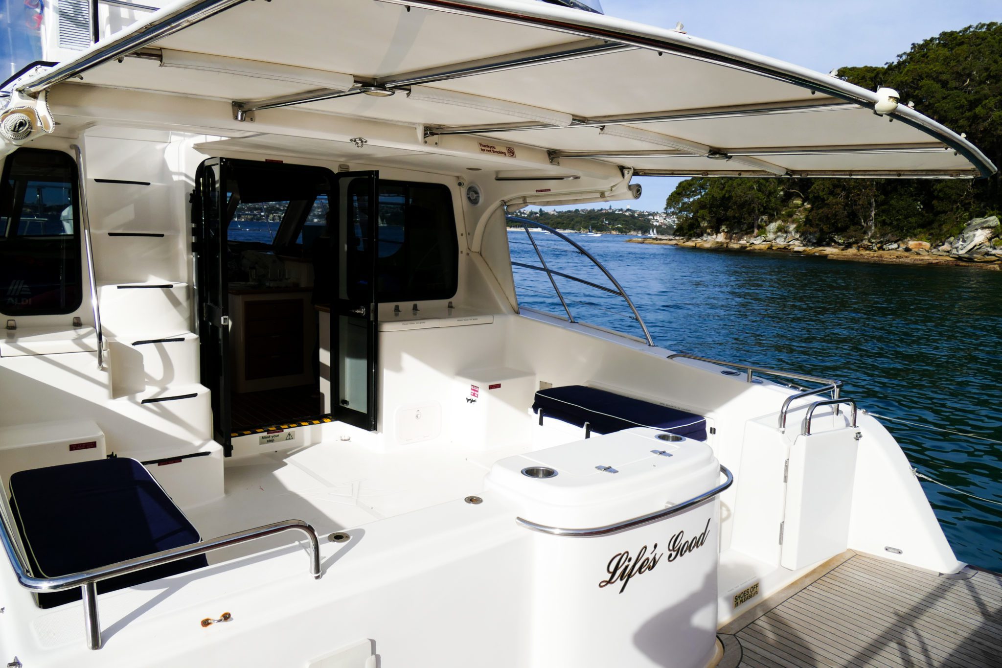 Cruise past iconic Sydney Harbour landmarks and anchor for lunch and a swim at one of the beautiful harbour bay locations with all the other vessels at the raft-up. Life’s Good offers flexible options for food and beverages, including a BBQ on board for your BYO food. The roomy aft deck is perfect for outdoor dining, while the flybridge provides stunning 360-degree views of Sydney Harbour.