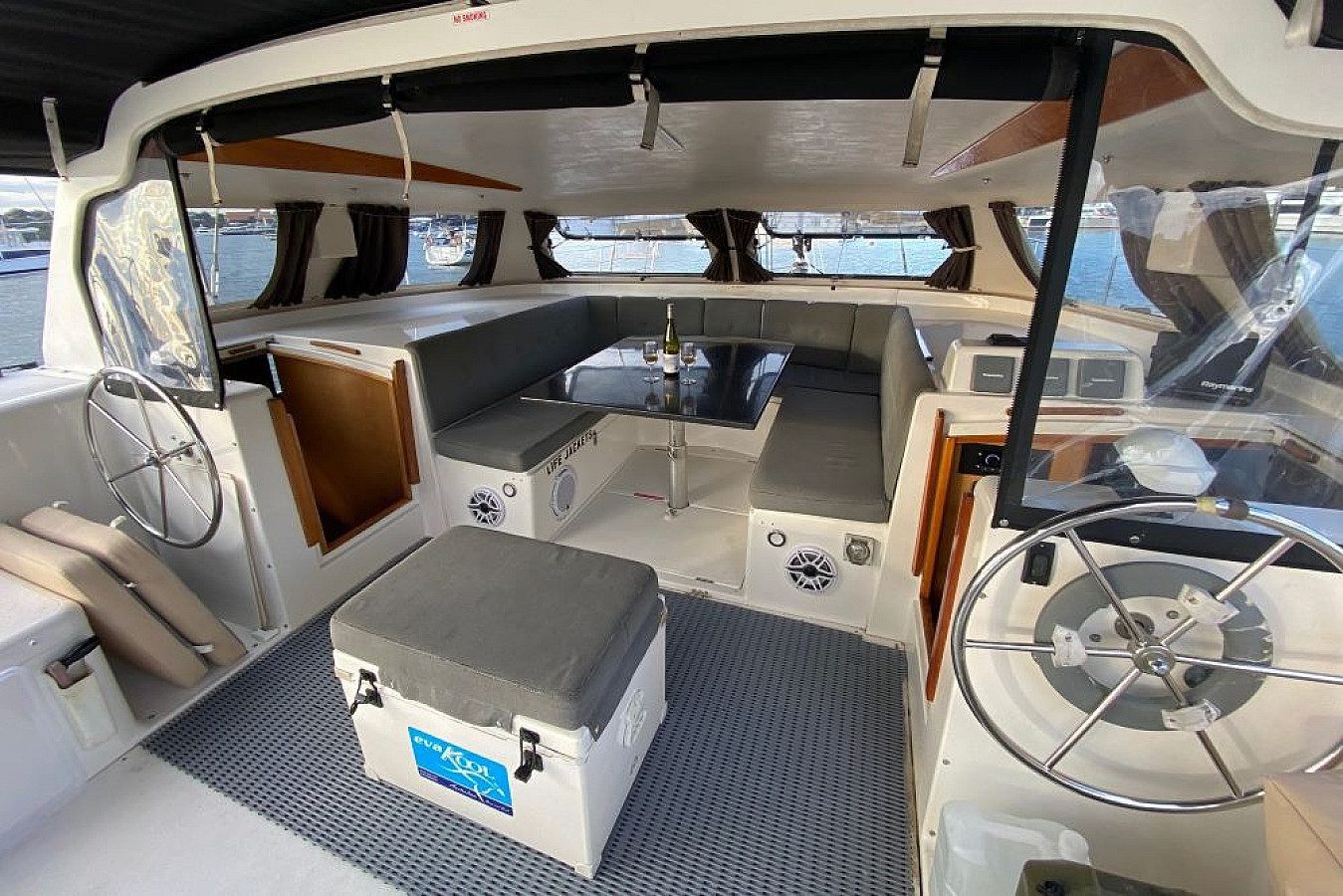 Ideal catamaran for small groups, accommodating up to 20 guests. Relax in the shade or bask on the bow nets. Swim, sunbathe, dance, and celebrate – this day is all yours to treasure! Complete with onboard bathroom and weather cover.