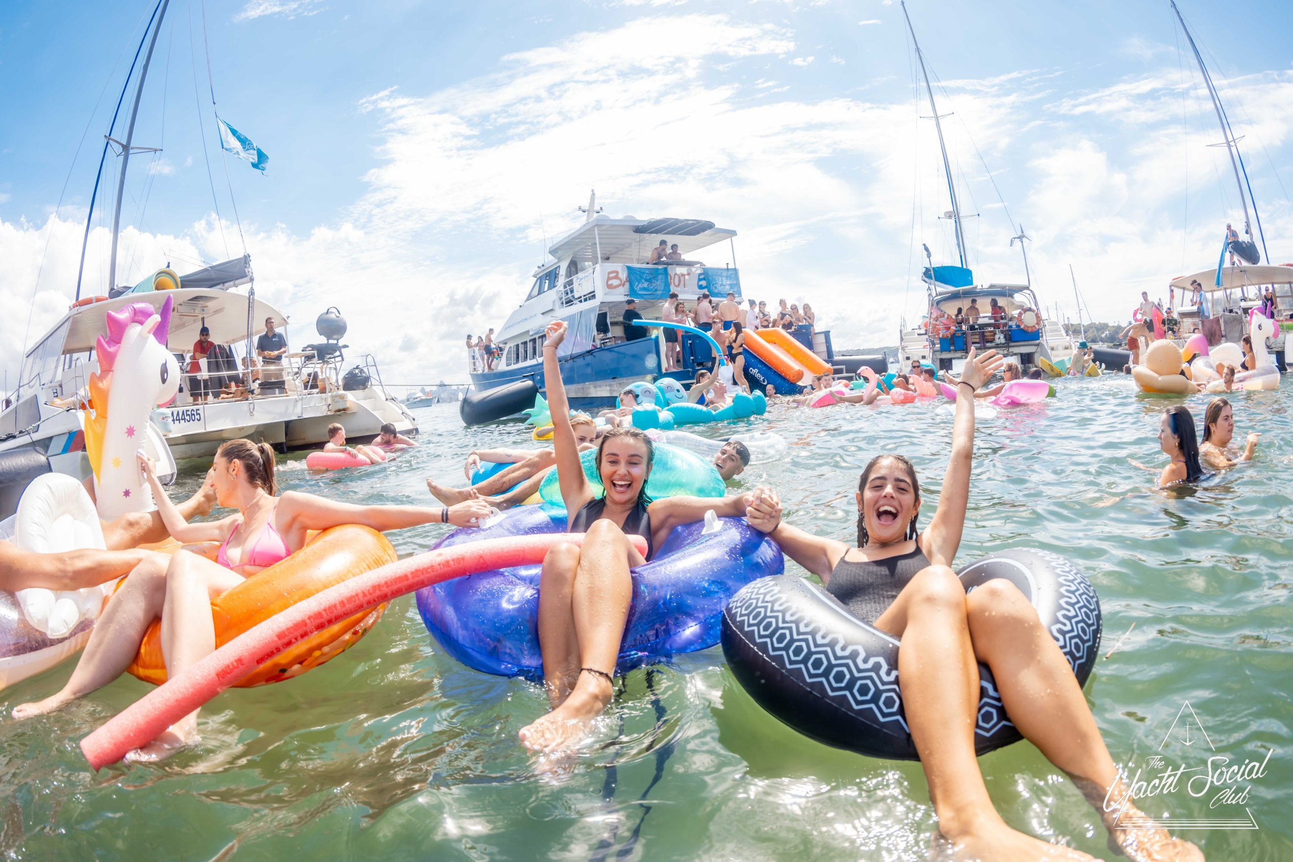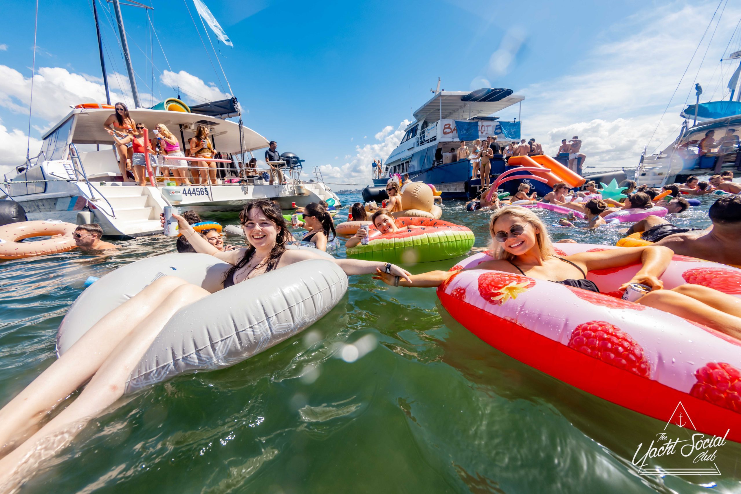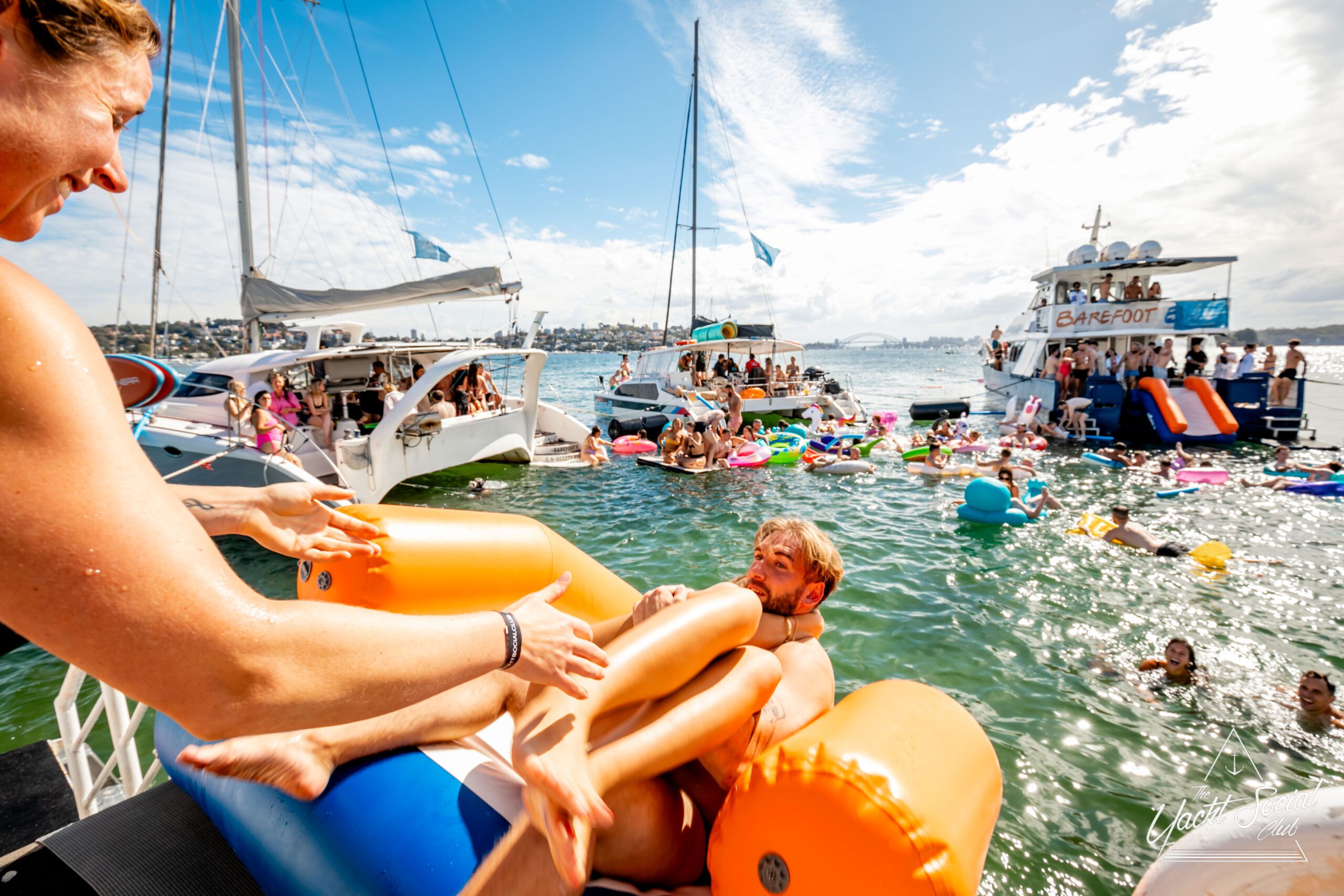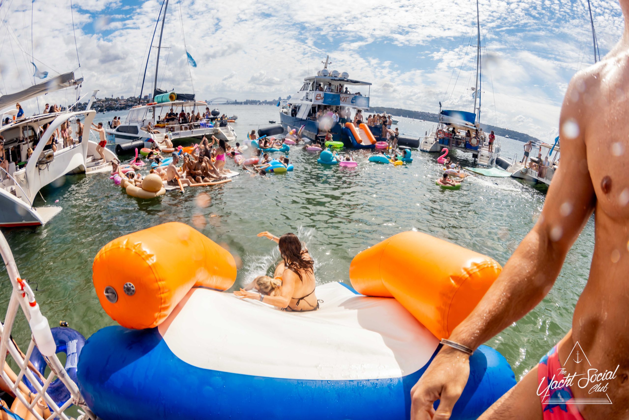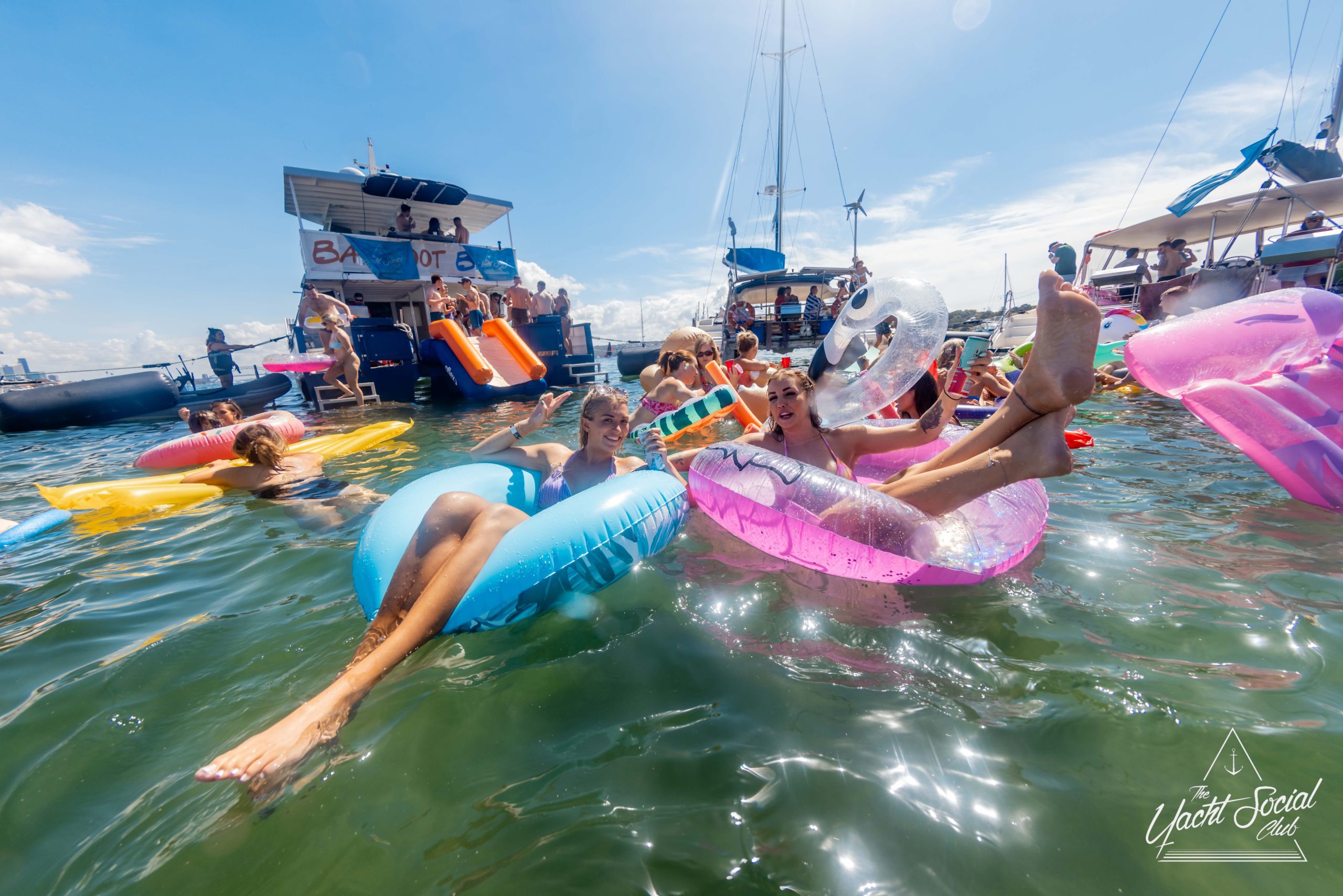 Yacht hire, skipper, deckhand, BBQ, BBQ utensils, esky and of course the raft-up party with DJs, Sound System, Lifeguards, safety boat etc.