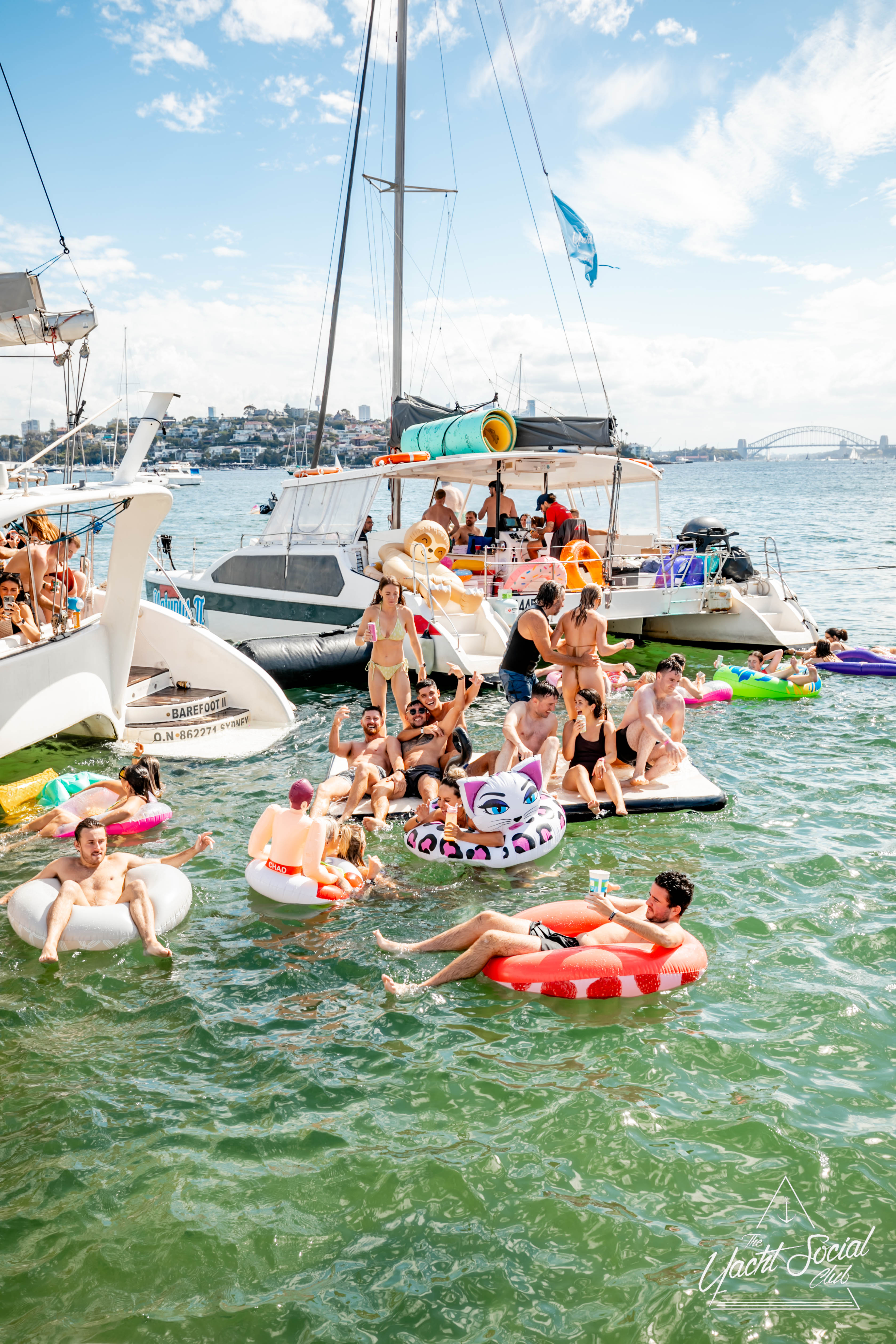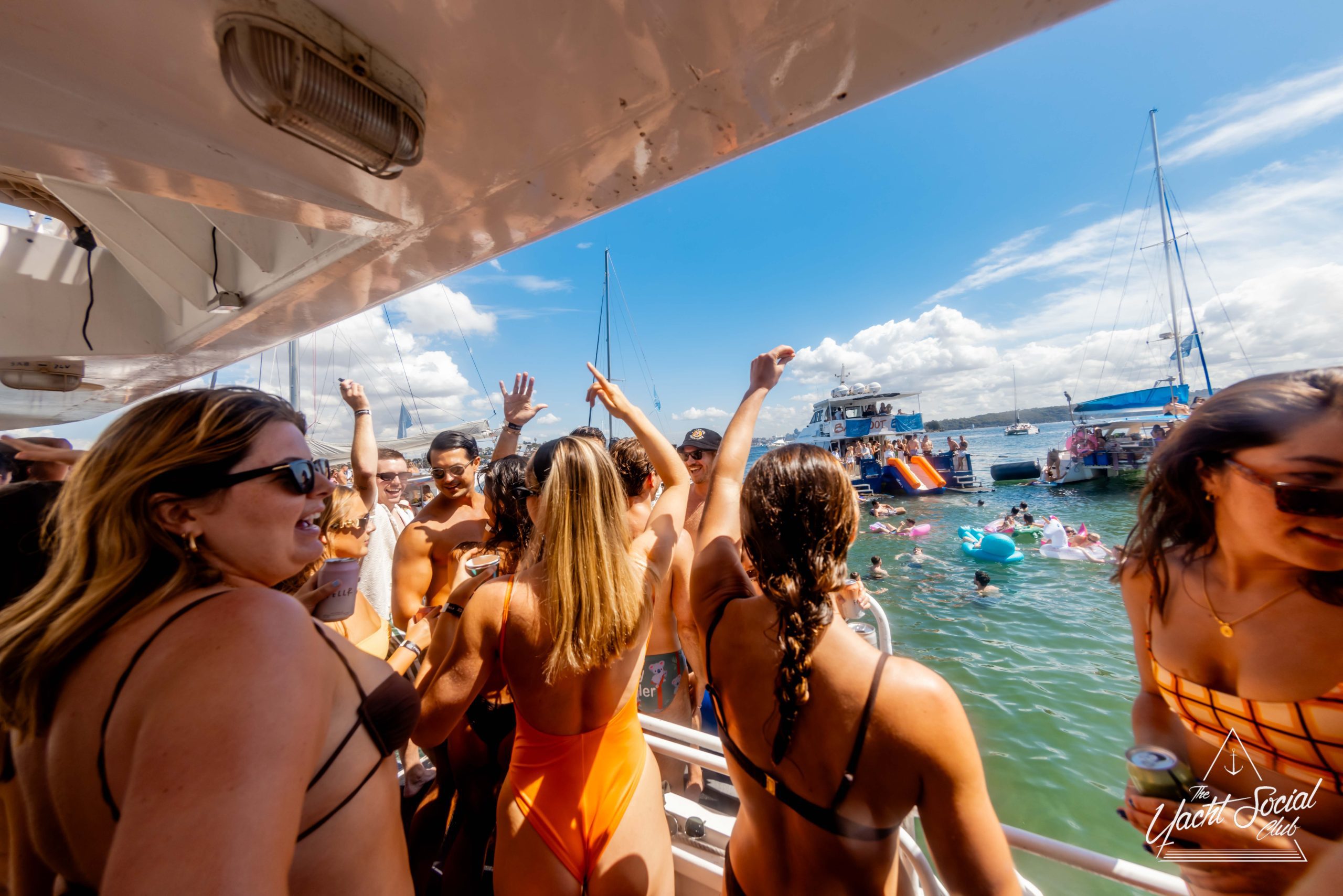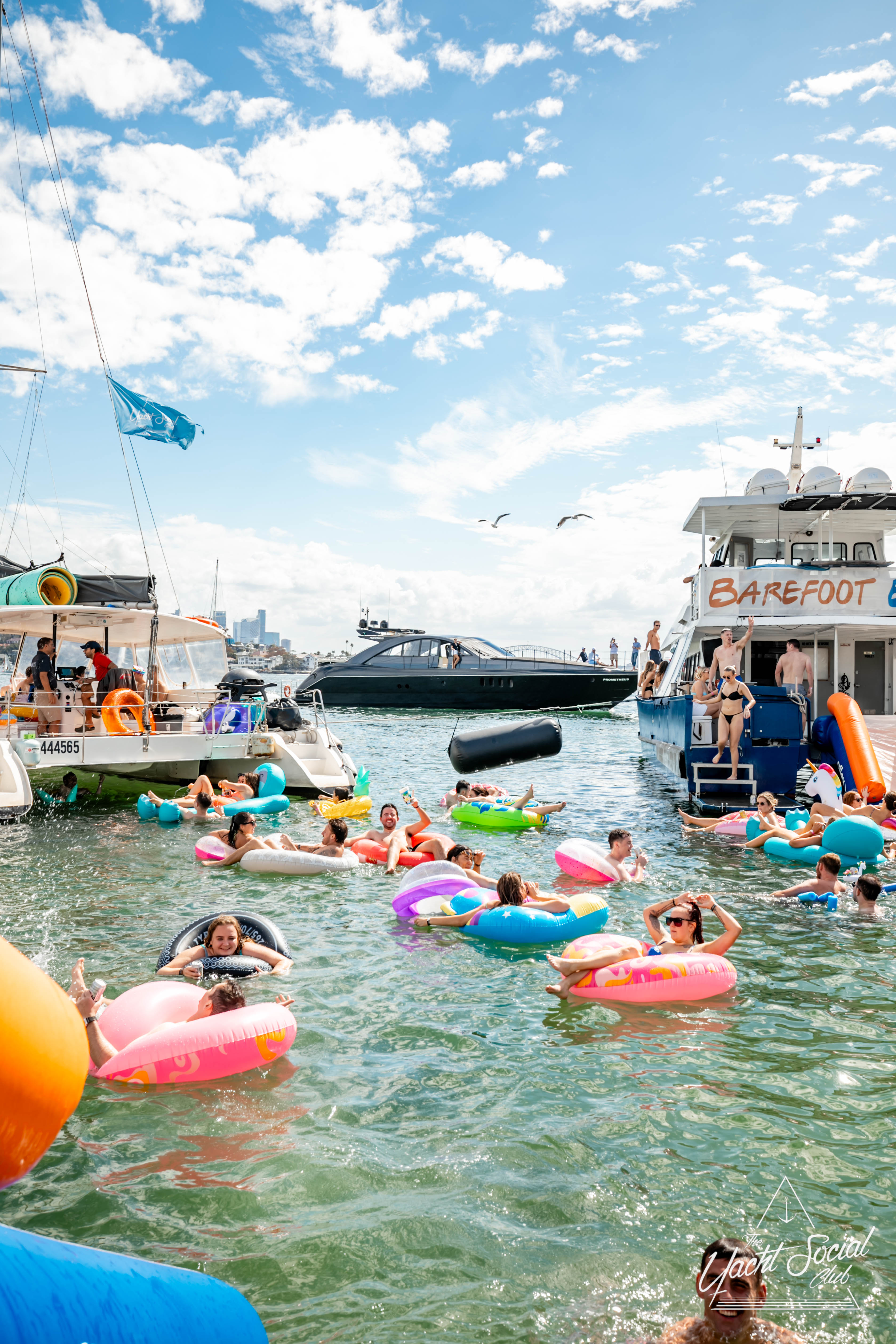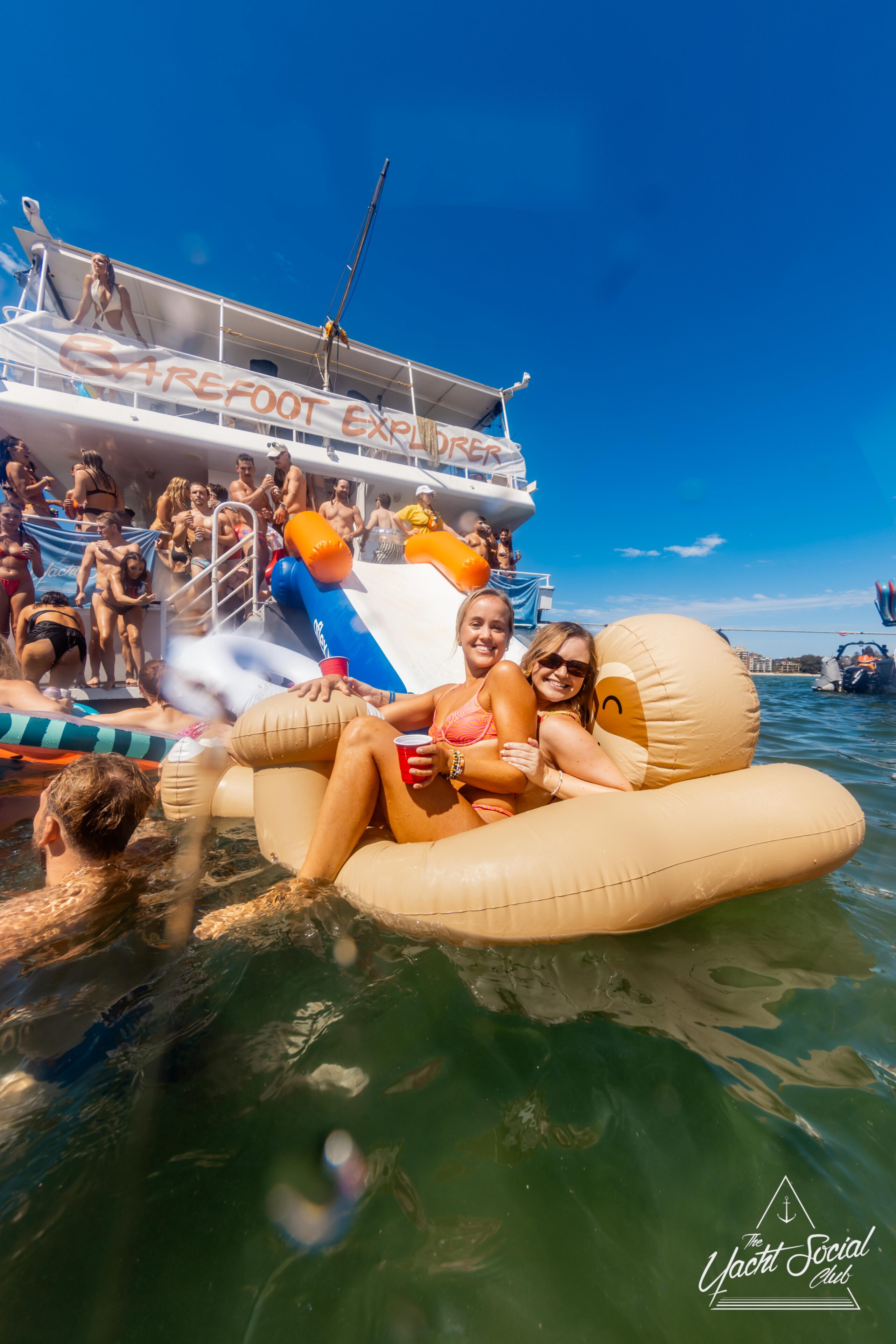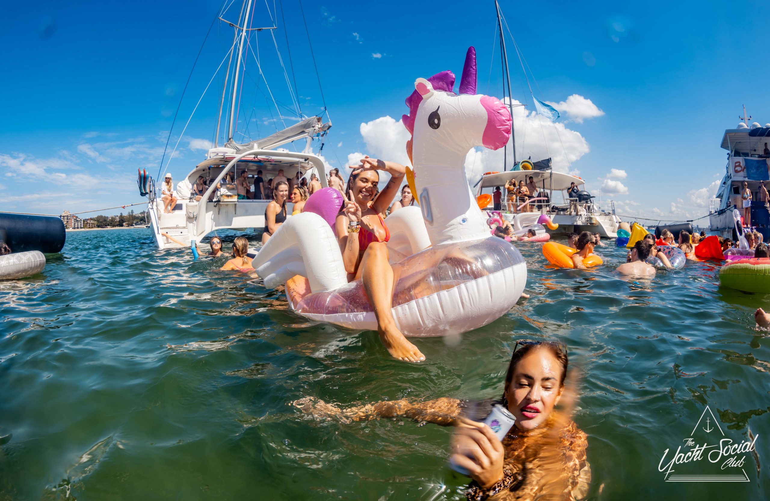 Yacht hire, skipper, deckhand, BBQ, BBQ utensils, esky and of course the raft-up party with DJs, Sound System, Lifeguards, safety boat etc.
