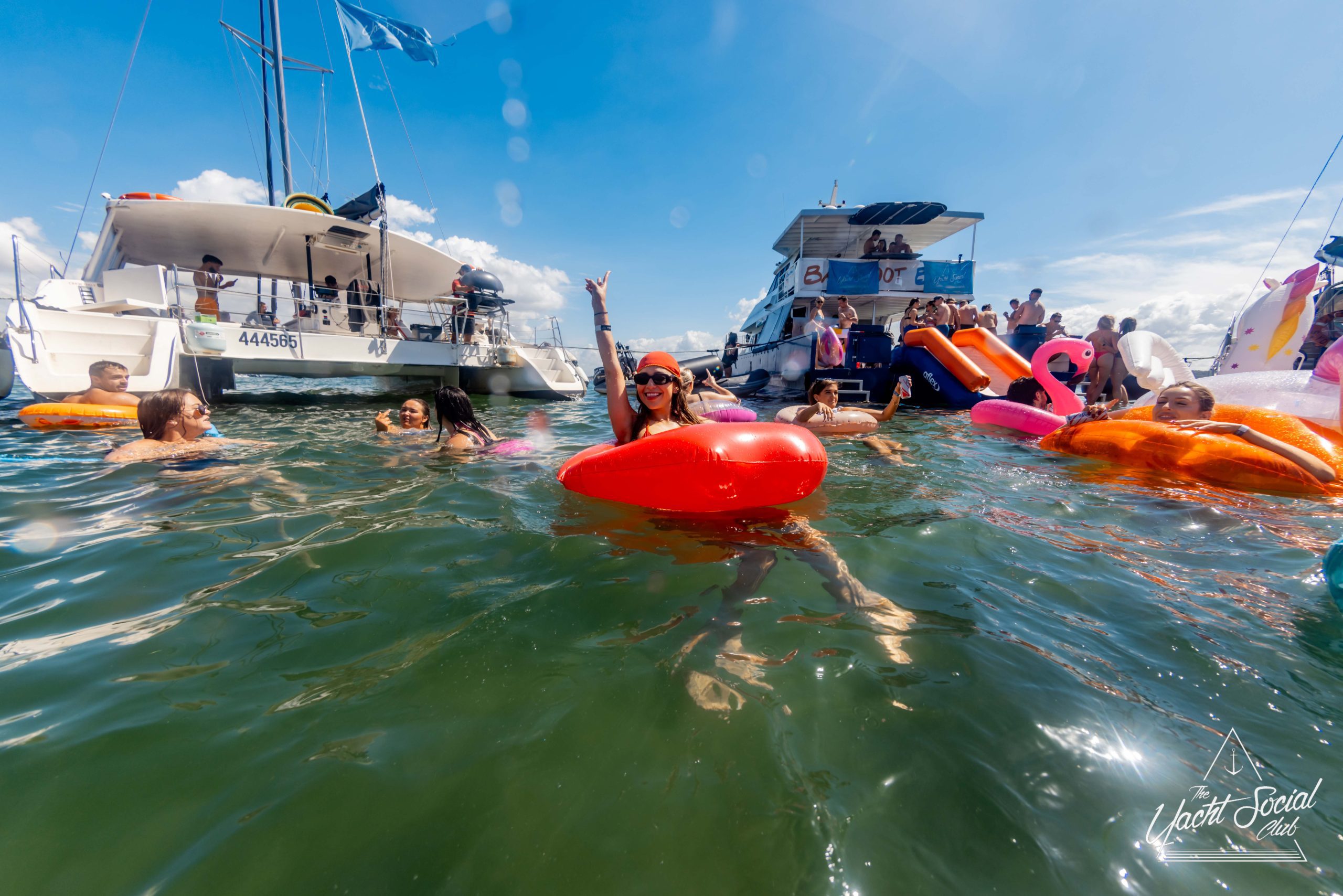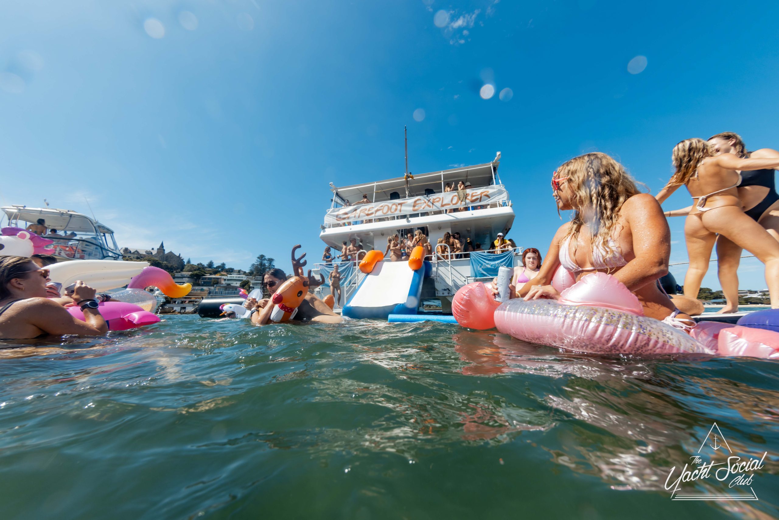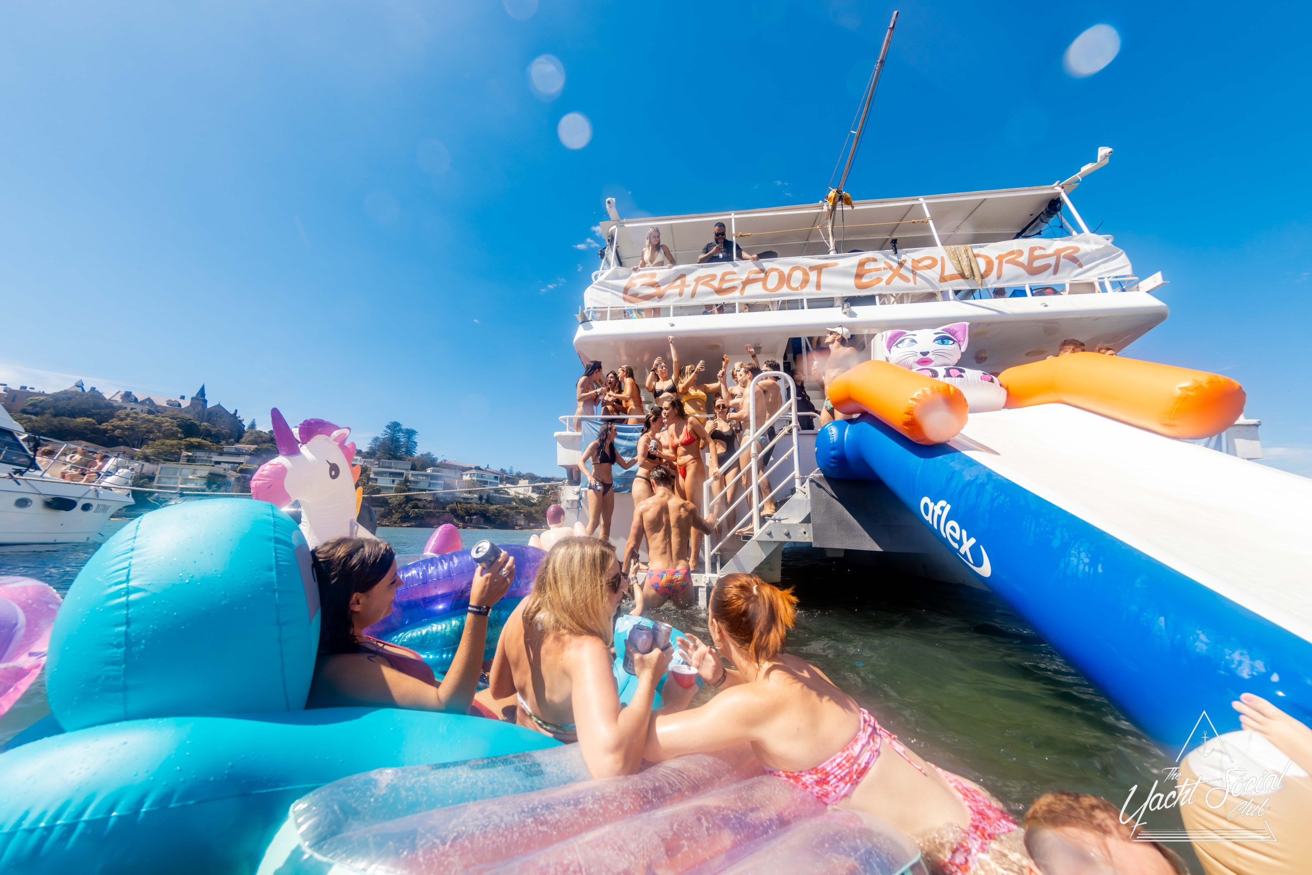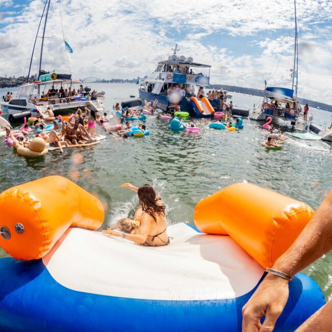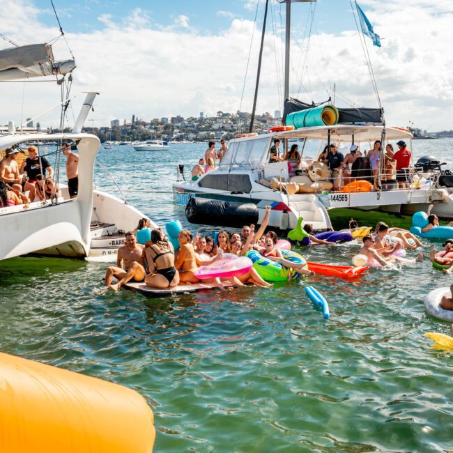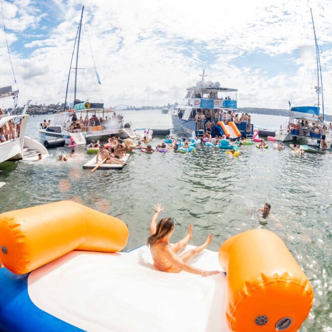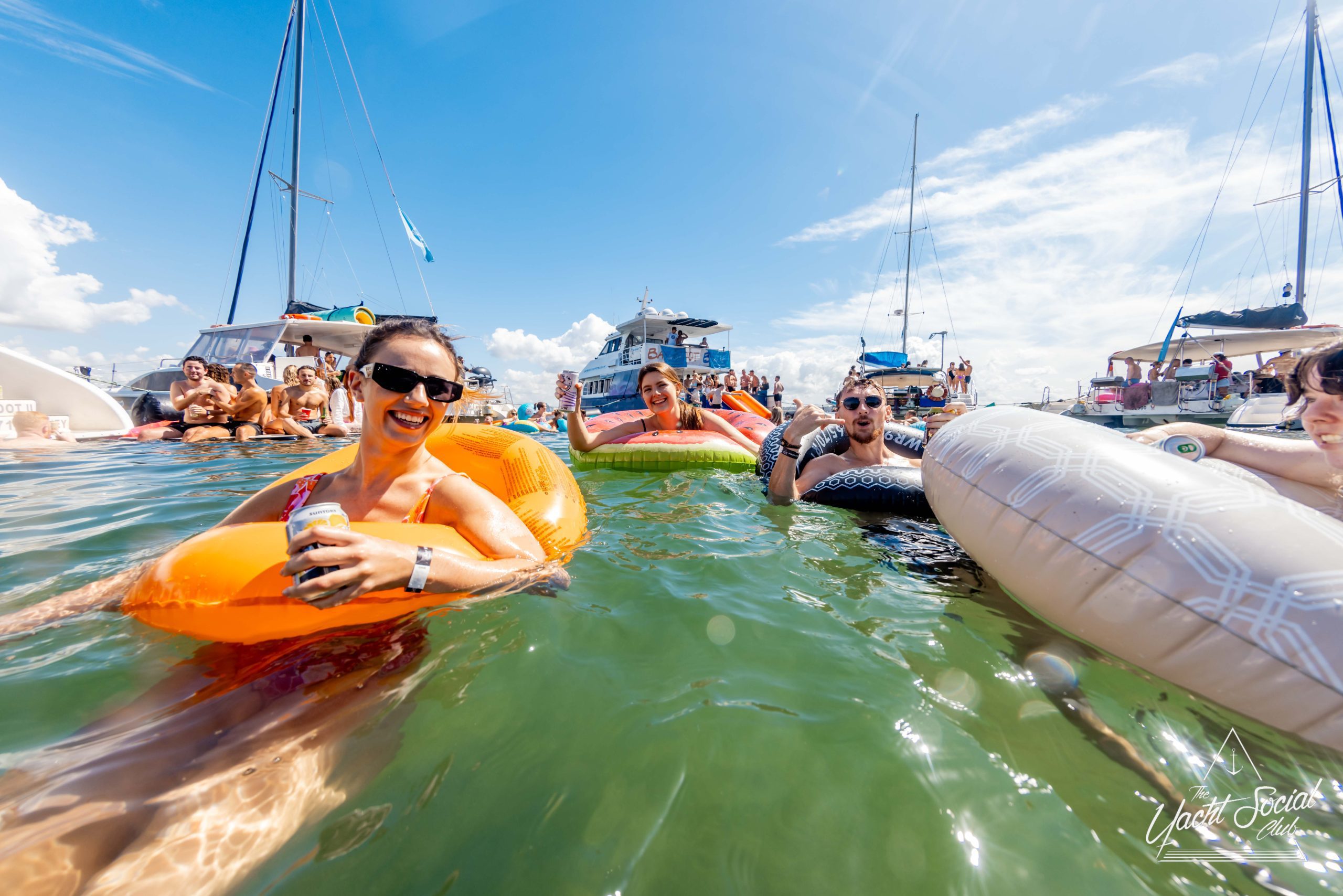 Yacht hire, skipper, deckhand, BBQ, BBQ utensils, esky and of course the raft-up party with DJs, Sound System, Lifeguards, safety boat etc.