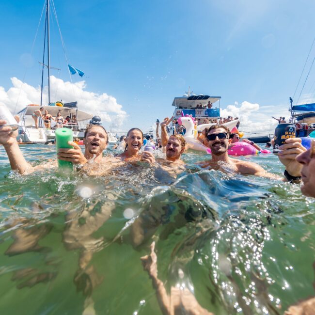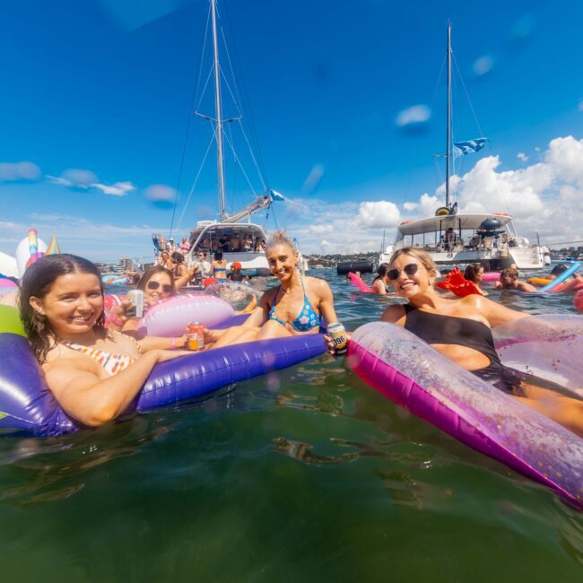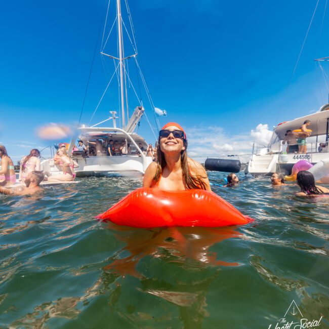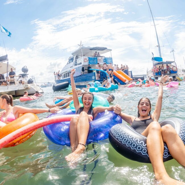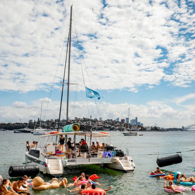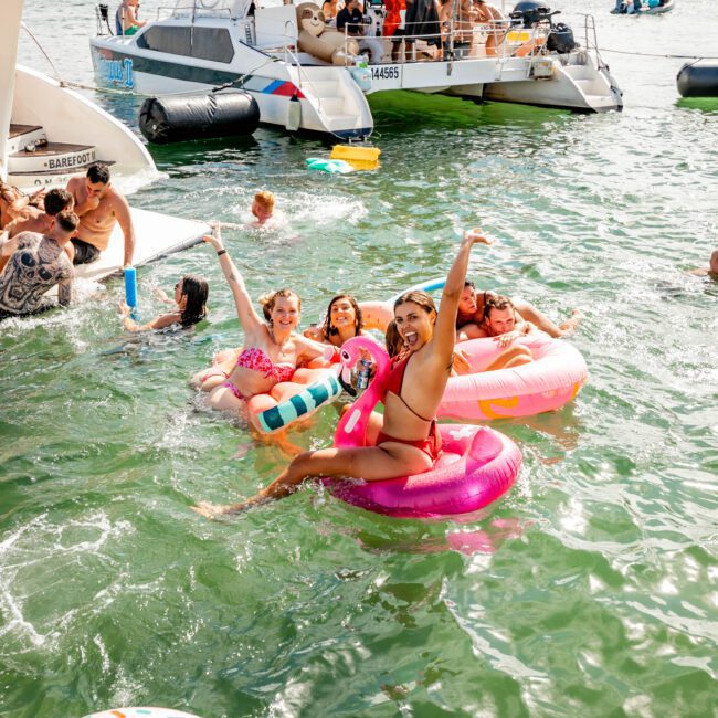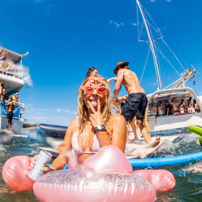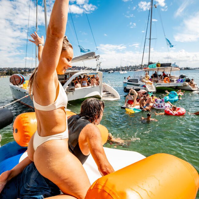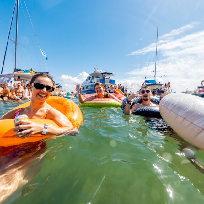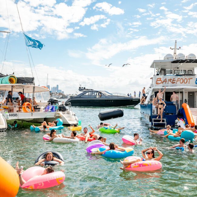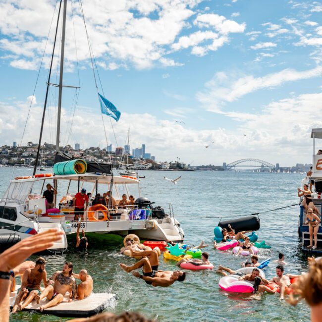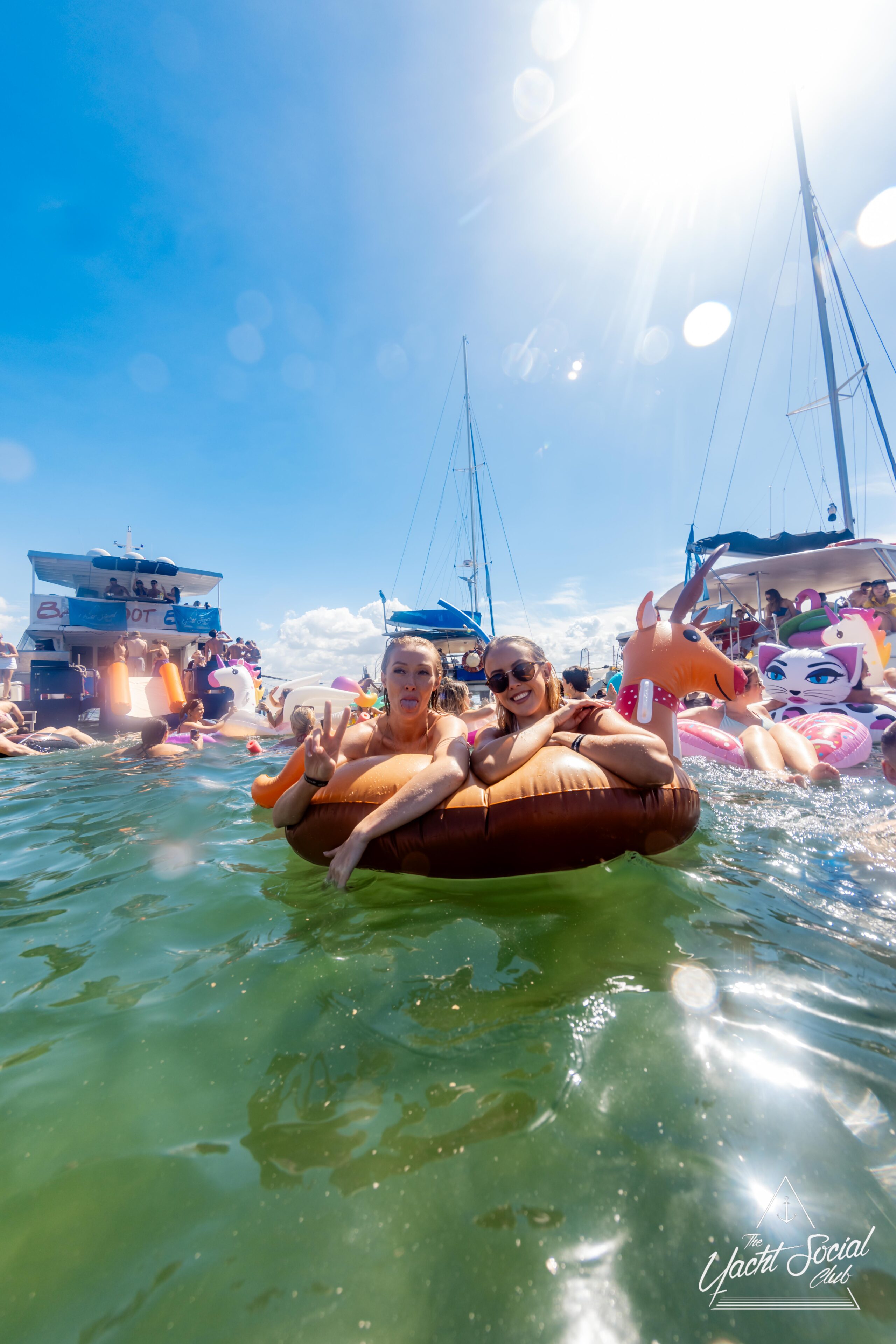 Yacht hire, skipper, deckhand, BBQ, BBQ utensils, esky and of course the raft-up party with DJs, Sound System, Lifeguards, safety boat etc.