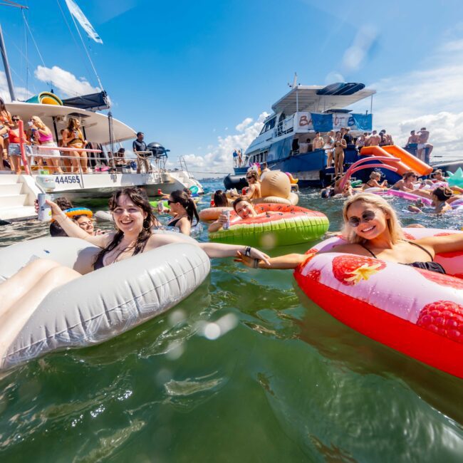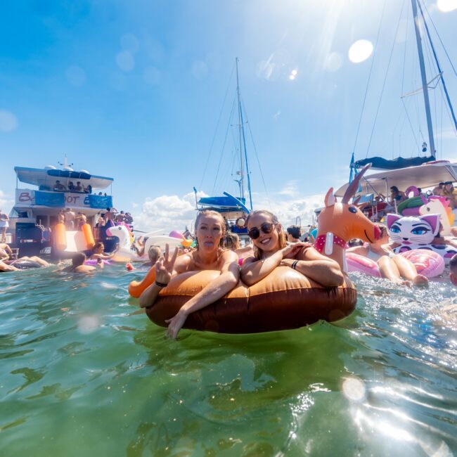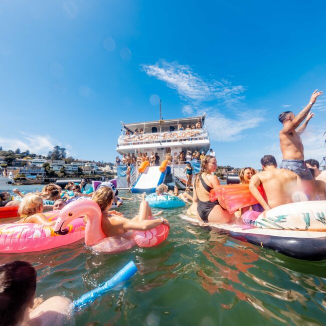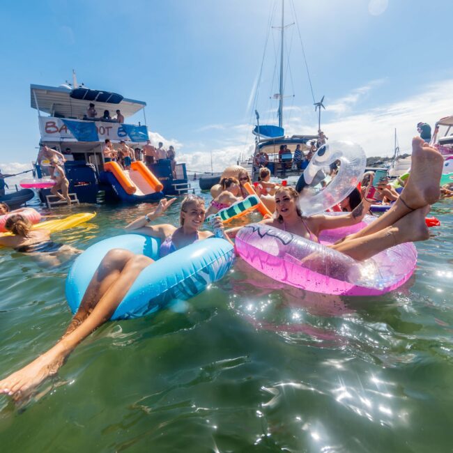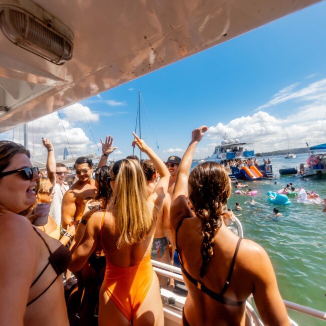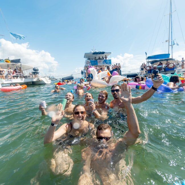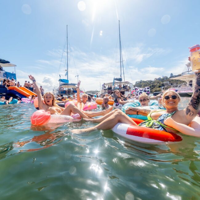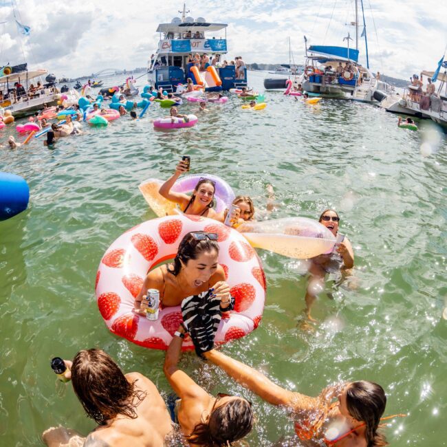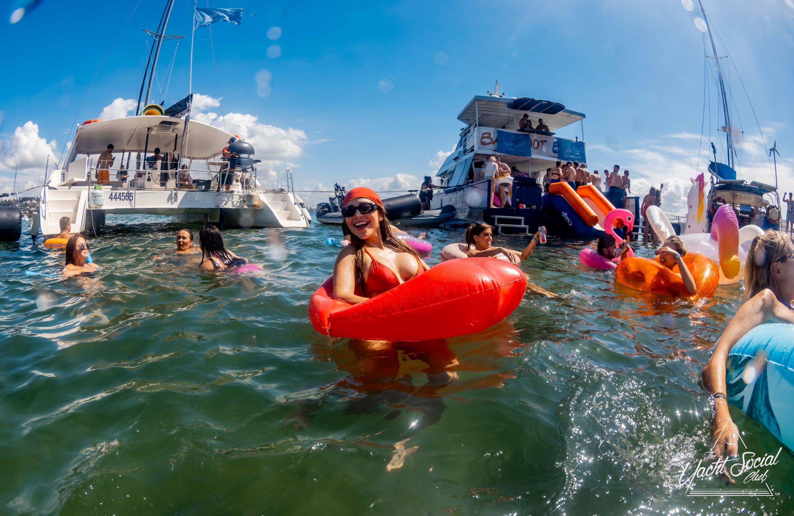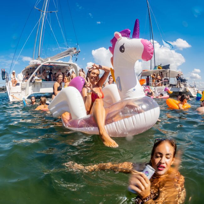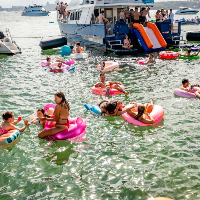 Yacht hire, skipper, deckhand, BBQ, BBQ utensils, esky and of course the raft-up party with DJs, Sound System, Lifeguards, safety boat etc.