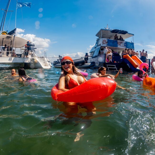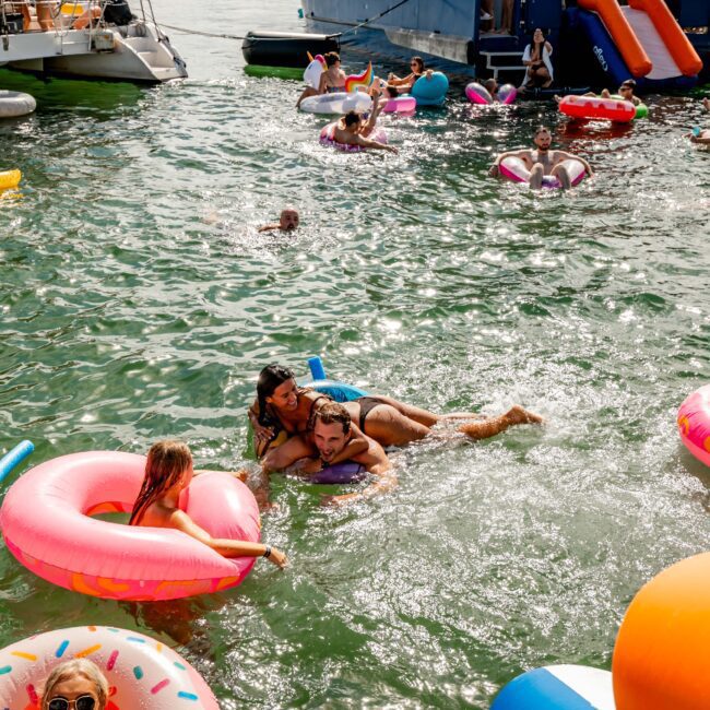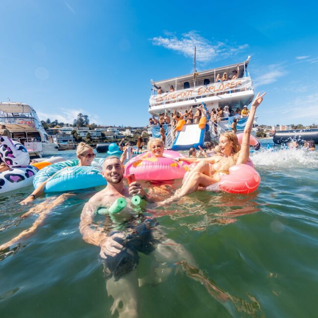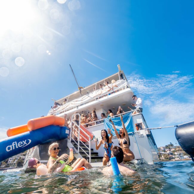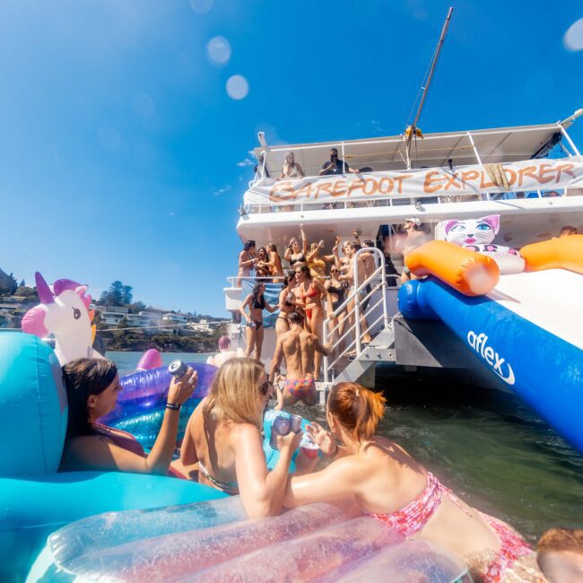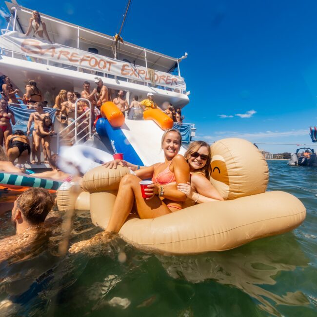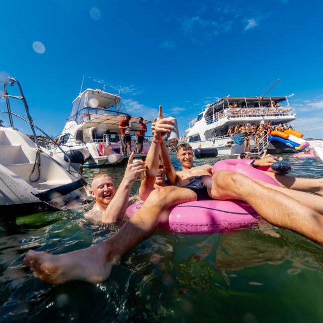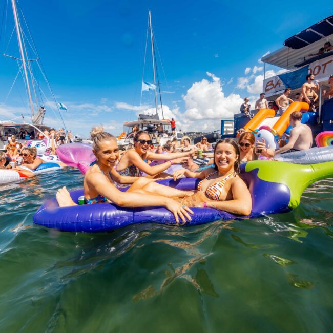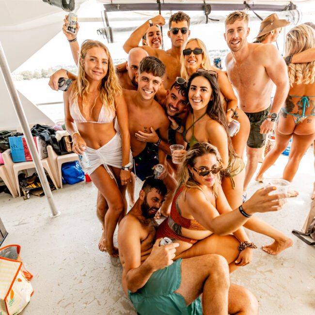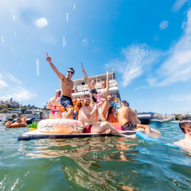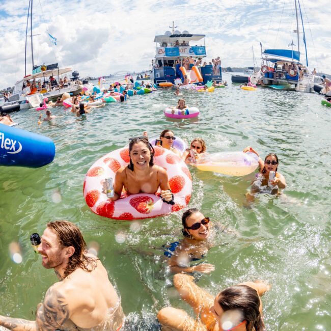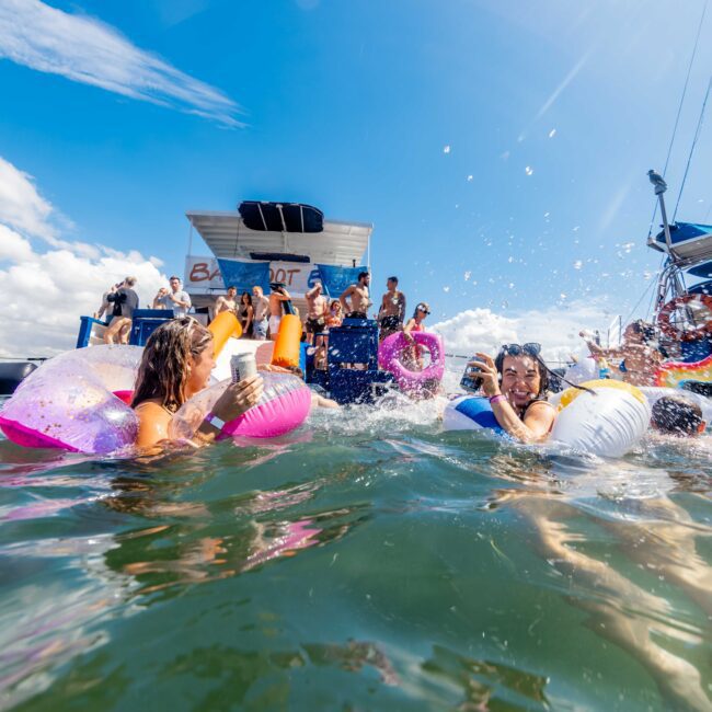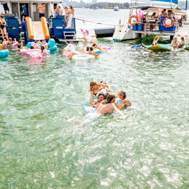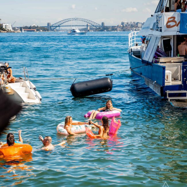 Yacht hire, skipper, deckhand, BBQ, BBQ utensils, esky and of course the raft-up party with DJs, Sound System, Lifeguards, safety boat etc.